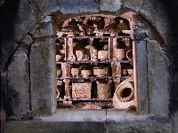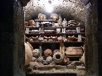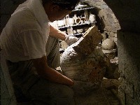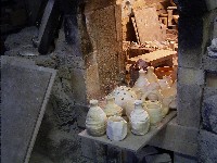 [窯出し] 窯焚き終了後、5日間冷ましてから窯出しを行います。 正面の煉瓦をはずして中に入り、手前の作品から出していきます。 |