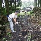 玉切りしたものを斧で割っていきます。 大割の薪と小割の薪を作っていき仕分けていきます。 |